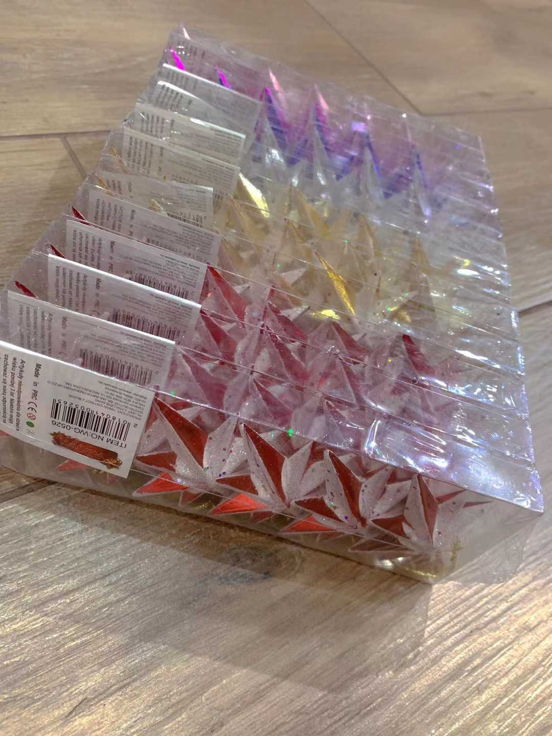 6cm八角星彩绘.6个/pvc盒.香槟色