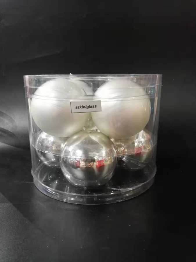 80mm玻璃球 银/每PVC桶装8pcs