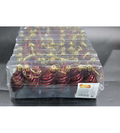 9cm螺旋尖果彩绘.6个/pvc盒.酒红