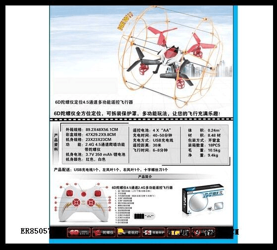 2.4G带6D陀螺仪遥控飞机带篮翻滚功能 红、白