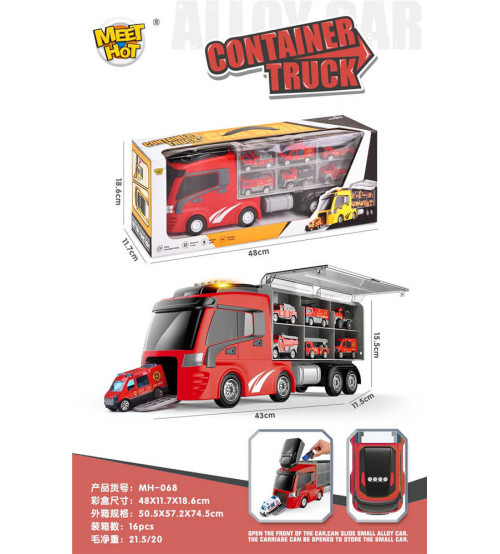 灯光音乐弹射合金收纳消防货柜车(配6只合金车 AA*2 不包电)(不含税 neto)