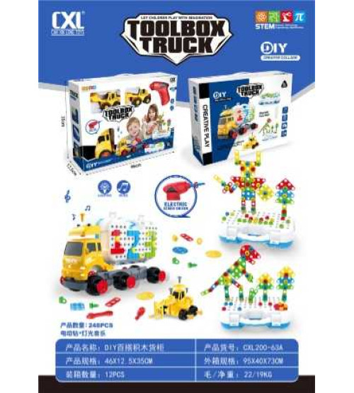 DIY百搭积木拼装货柜配电动钻+灯光音乐(248PCS)