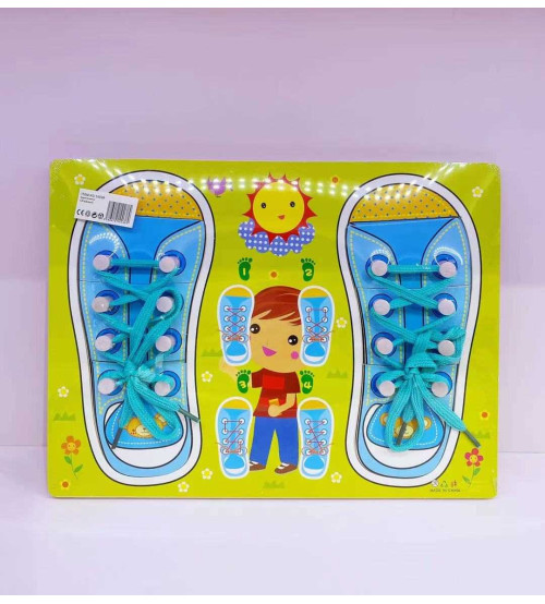 男孩绑鞋带