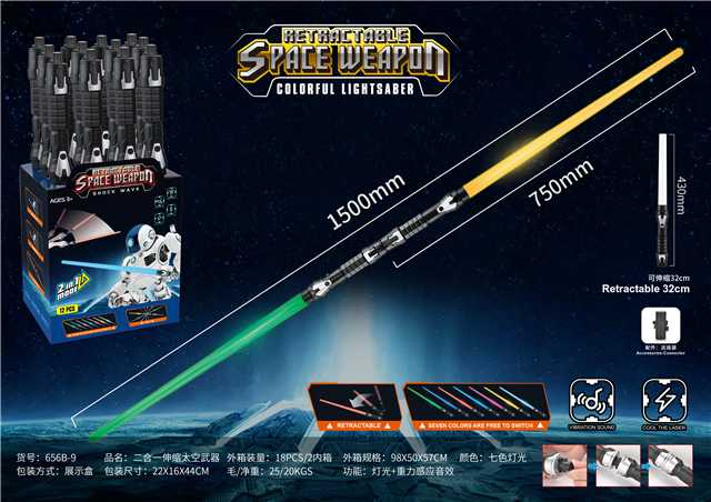 七色可伸缩双头灯太空武器电动光剑(灯光+声音)12pcs/盒(不含税 neto)