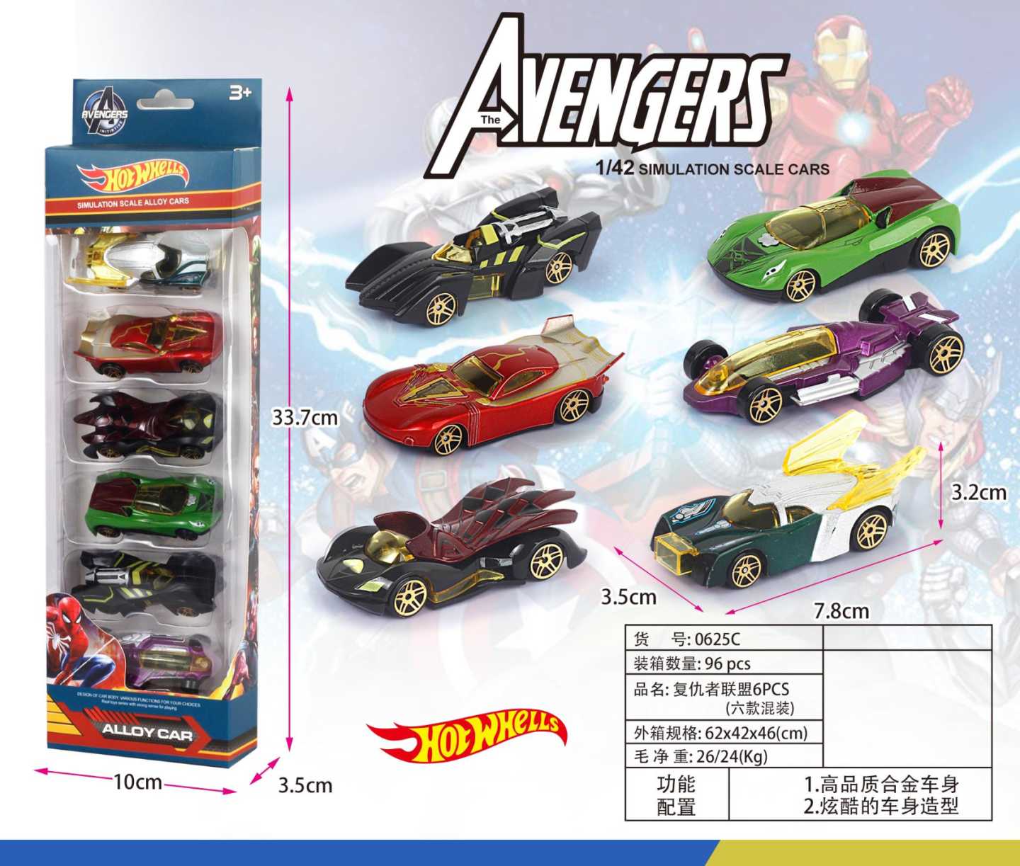 1:42复仇者联盟合金车6pcs(不含税 neto)