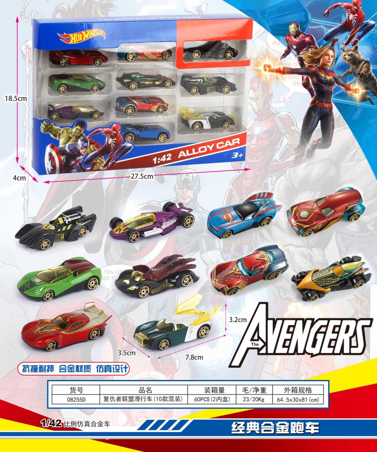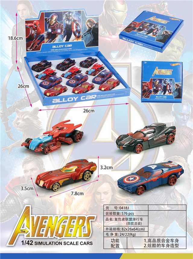 1:42复仇者联盟滑行车(10款混装)(不含税 neto)