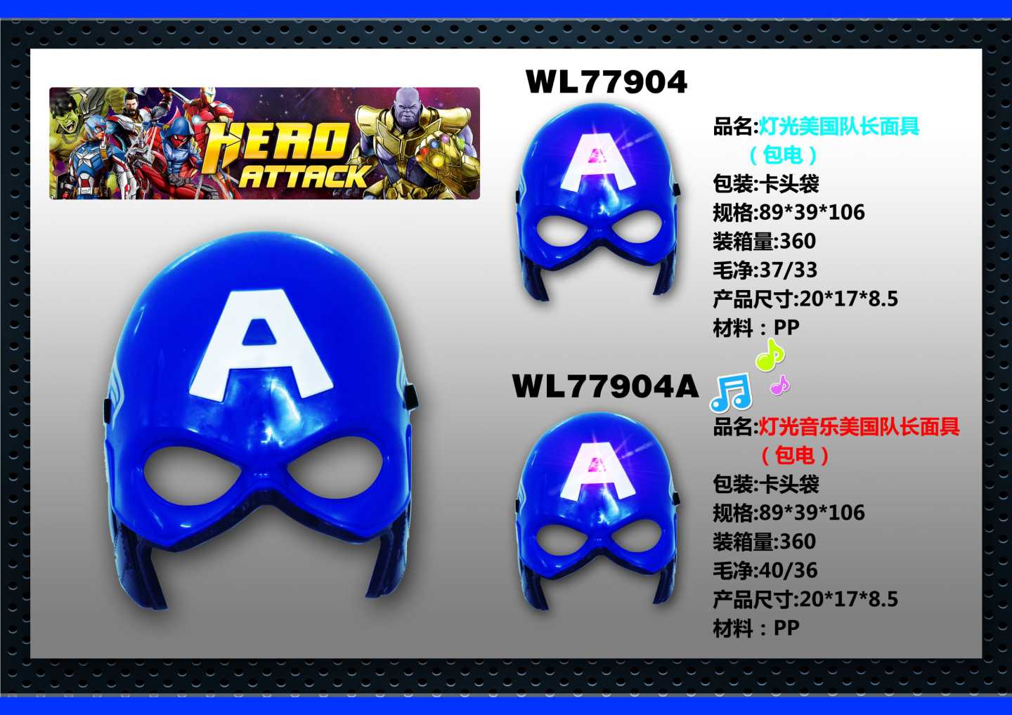 灯光美国队长面具(包电)(不含税 neto)