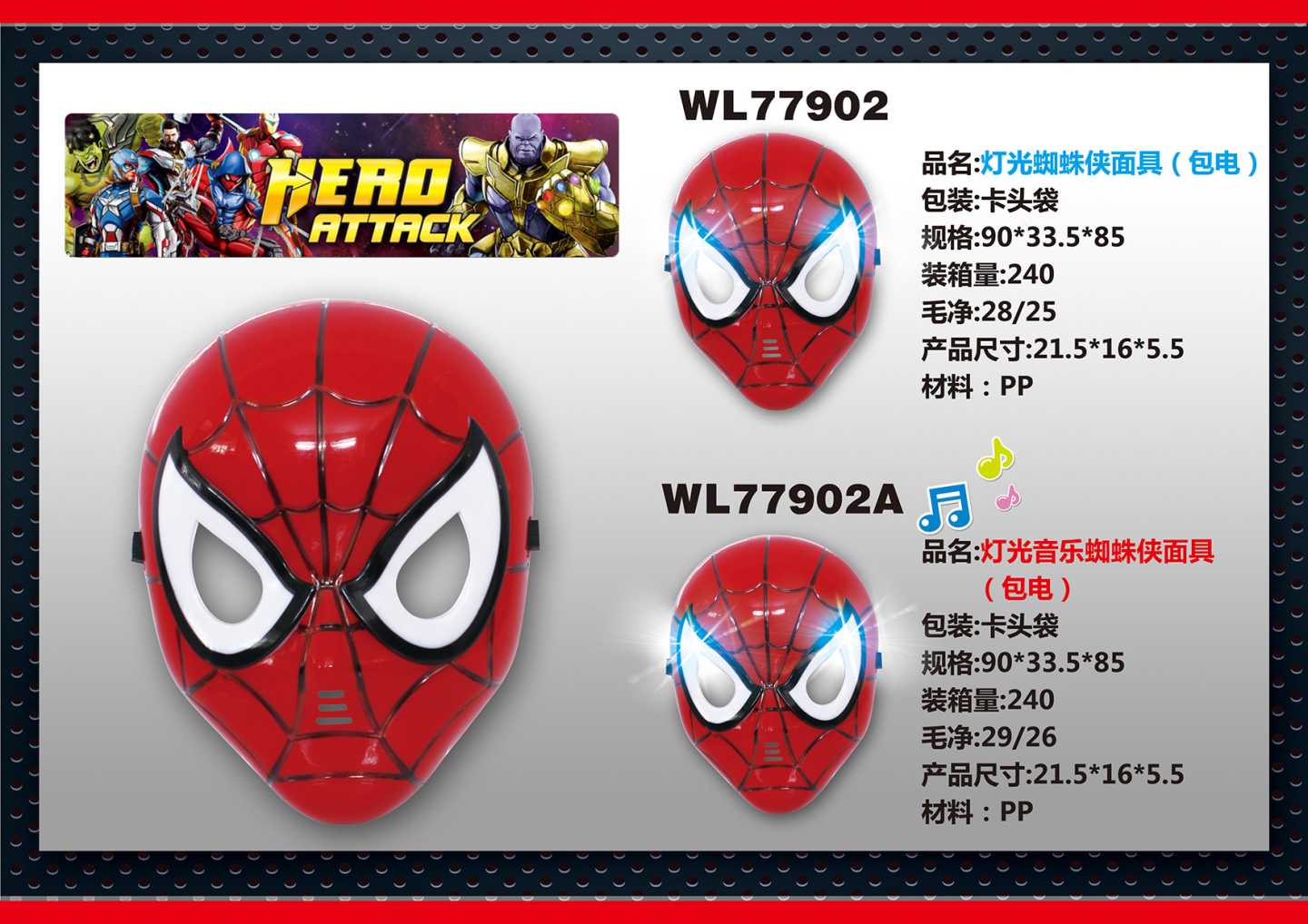 灯光蜘蛛侠面具(包电)(不含税 neto)