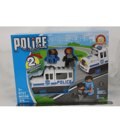 电动灯光音乐滑行万向两用警车积木