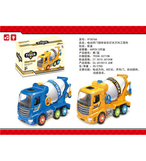 "电动开门搅拌音乐8灯光万向工程车"