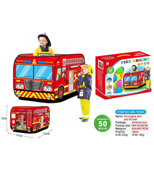 儿童消防车帐篷车带50粒海洋球